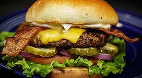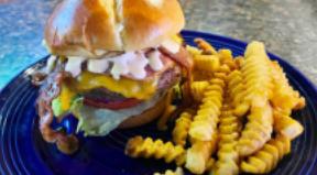 BBQ BACON CHEESEBURGER $15 Bacon Strips. Cheddar Cheese. Honey Stung BBQ.
