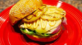 ALOHA CHICKEN $14 Cajun Grilled Chicken. Pineapple Rings. Swiss Cheese. Sriracha Aioli. Bun.